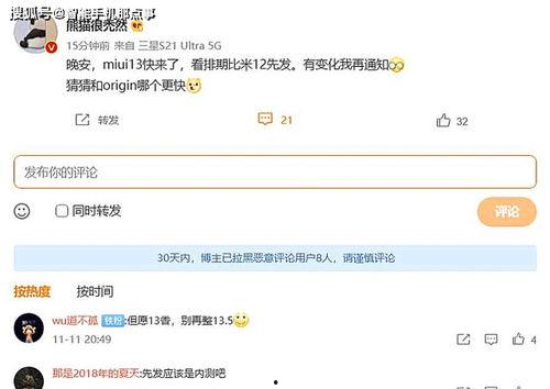 亲爱的读者们,你是否也和我一样,对即将到来的科技新品充满期待?今天,我要和你分享一个让人心跳加速的消息——关于MIUI 13的视频爆料!没错,就是那个我们每天都离不开的操作系统,即将迎来全新的升级。让我们一起揭开它的神秘面纱,看看这次升级有哪些亮点吧!